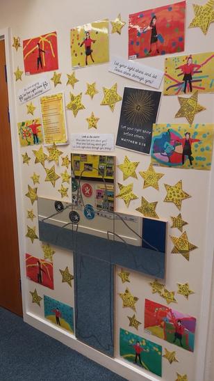 Whole school prayer station. A dedicated space for prayer and reflection that changes according to the time of year and/or children's needs and interest.