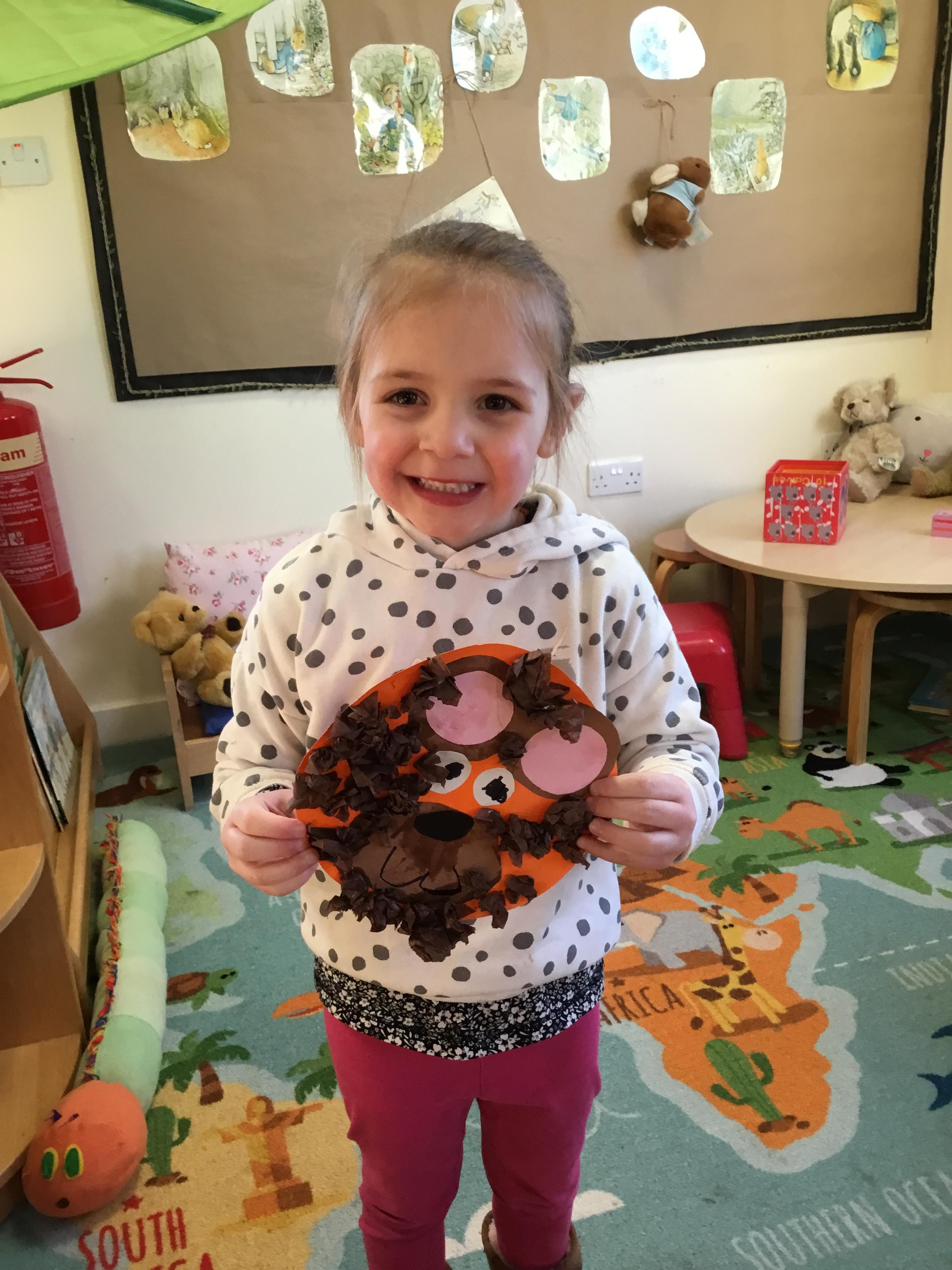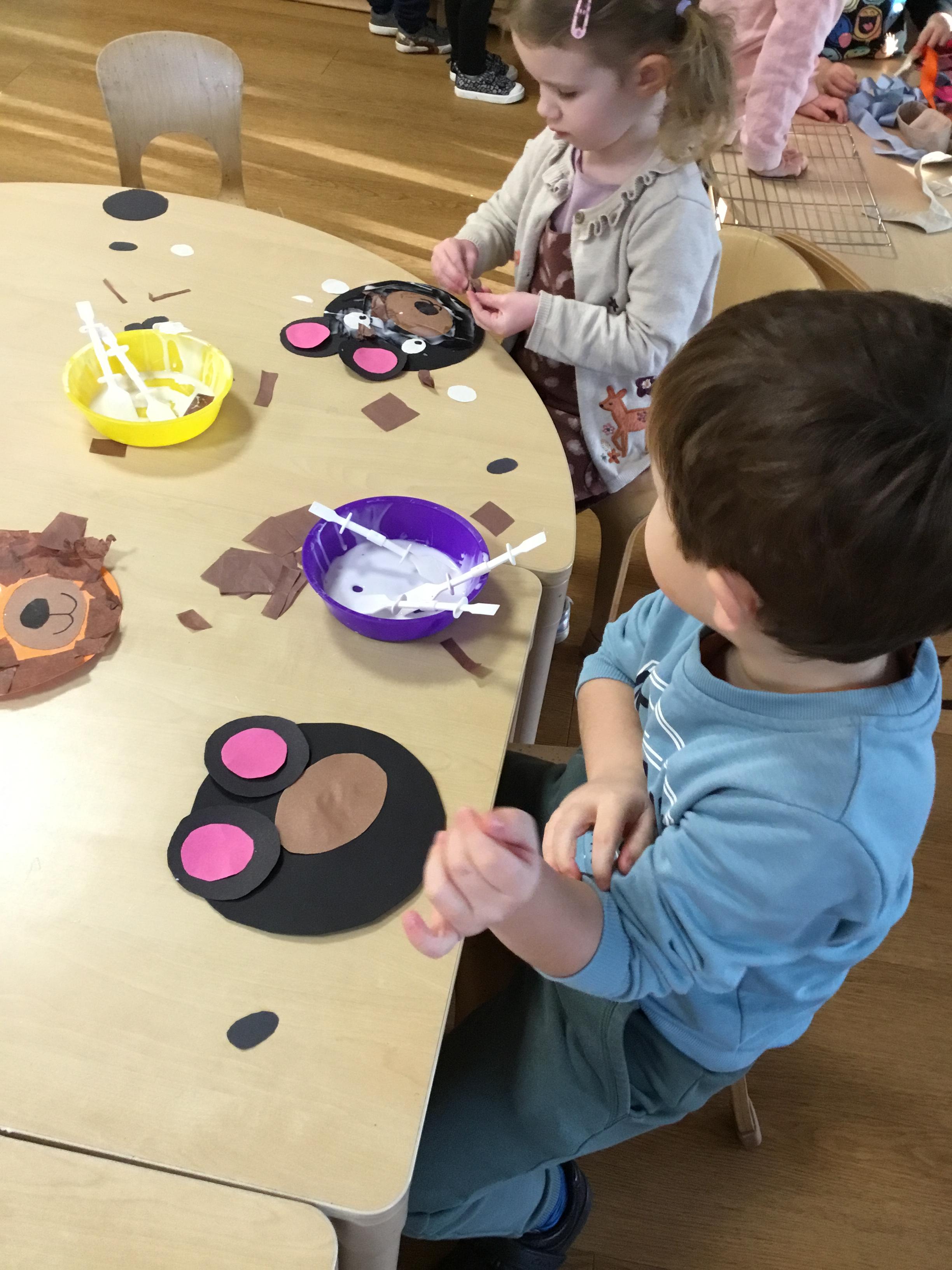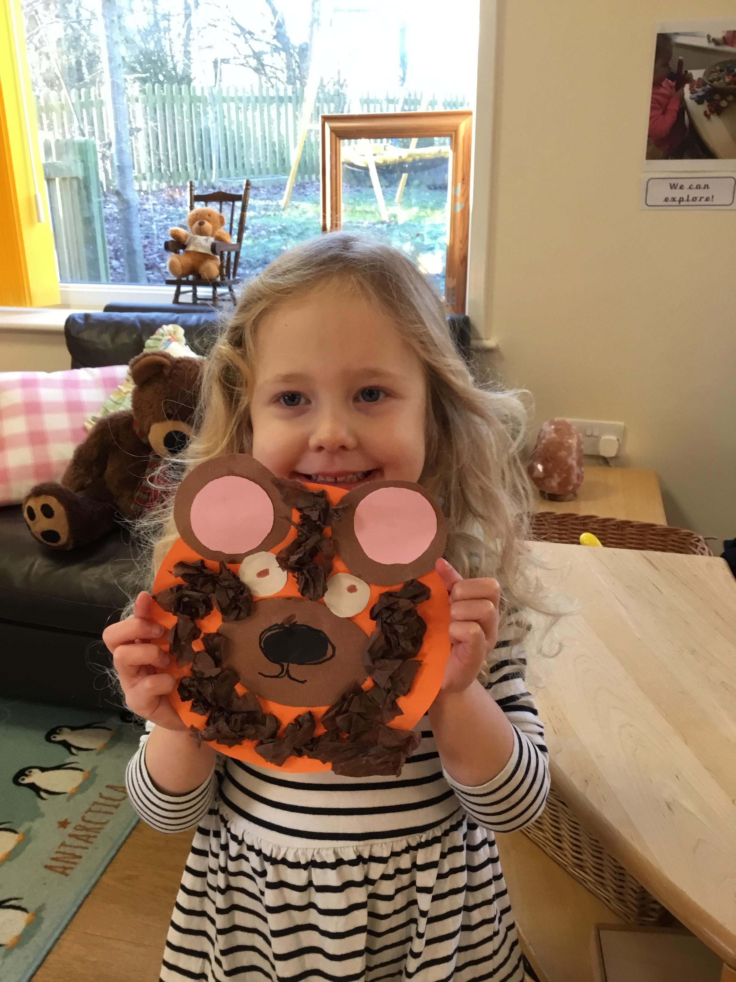 Equally fun was our Bear theme finding out all about different types of real bears as well as learning about the very first ‘teddy’ bear. We shared lots of bear stories including Goldilocks and the Three Bears and Paddington. We made and tasted our own porridge and marmalade sandwiches (although we didn’t keep them under our hats!) We did lots of bear themed arts and crafts and the children had great fun using different types of brushes, including toothbrushes, to create fuzzy wuzzy bears!