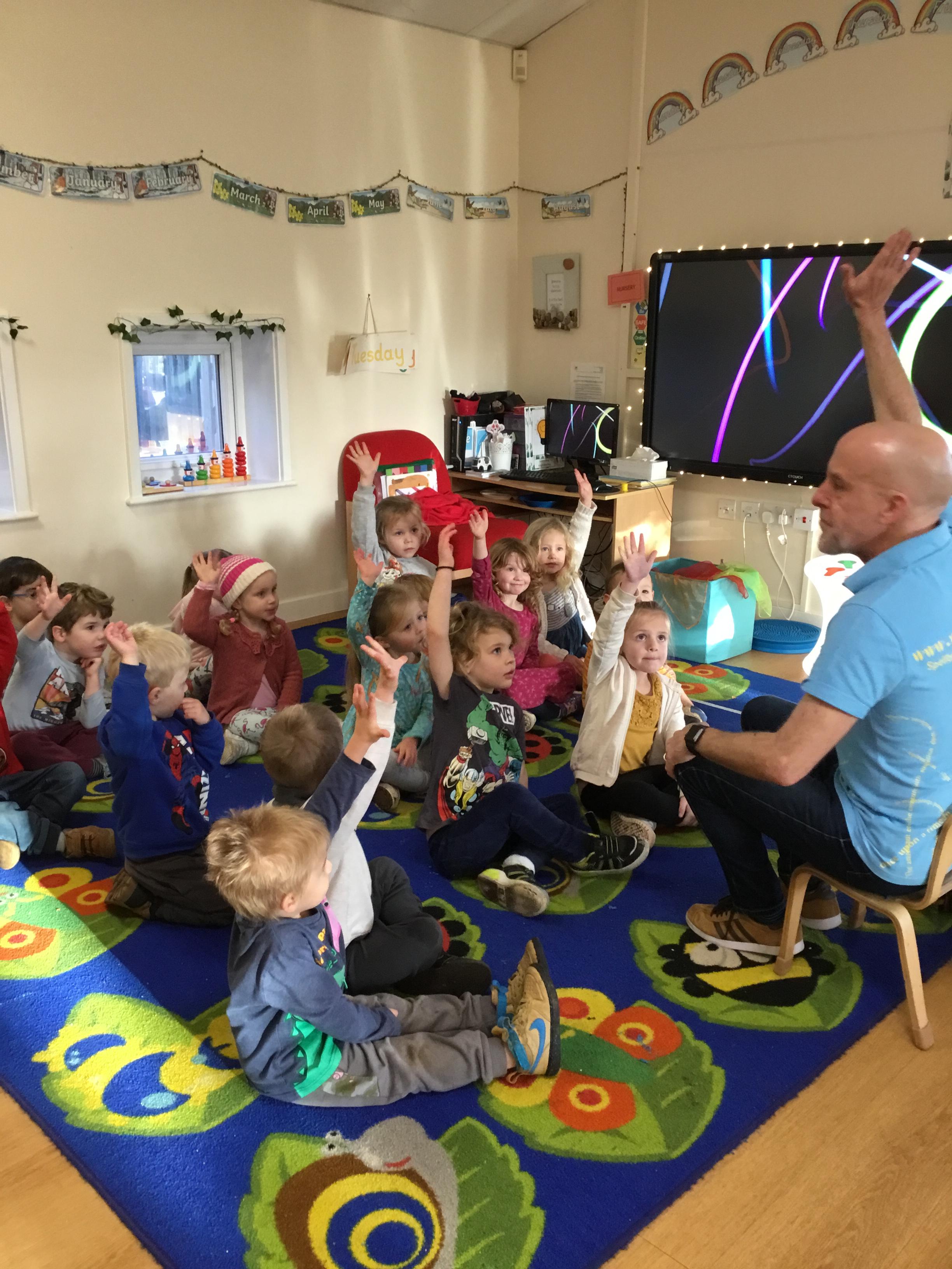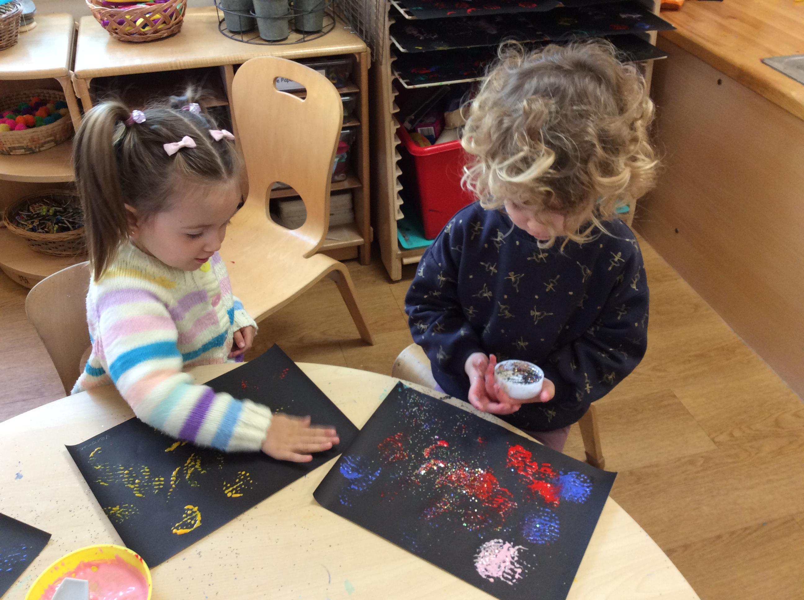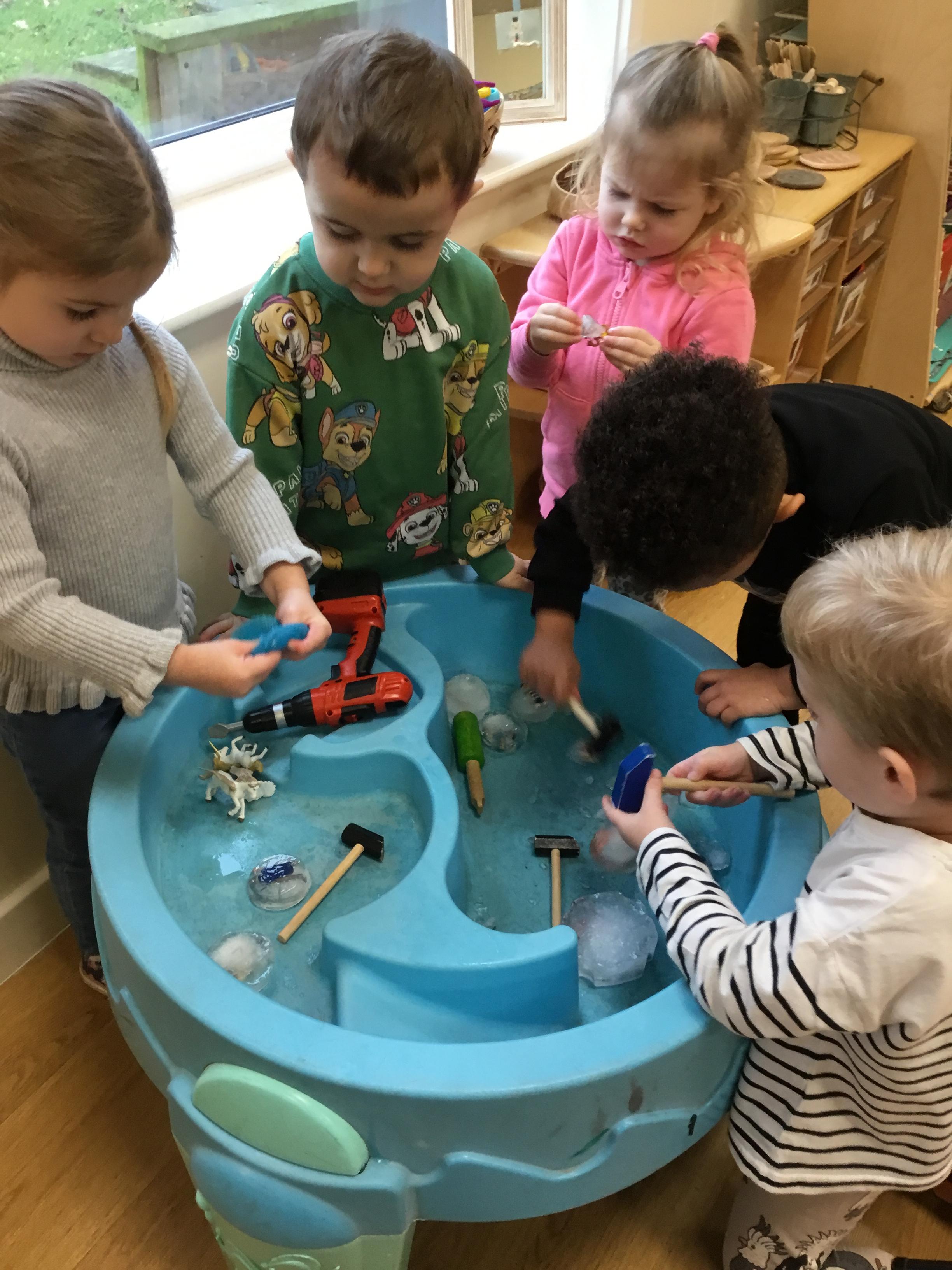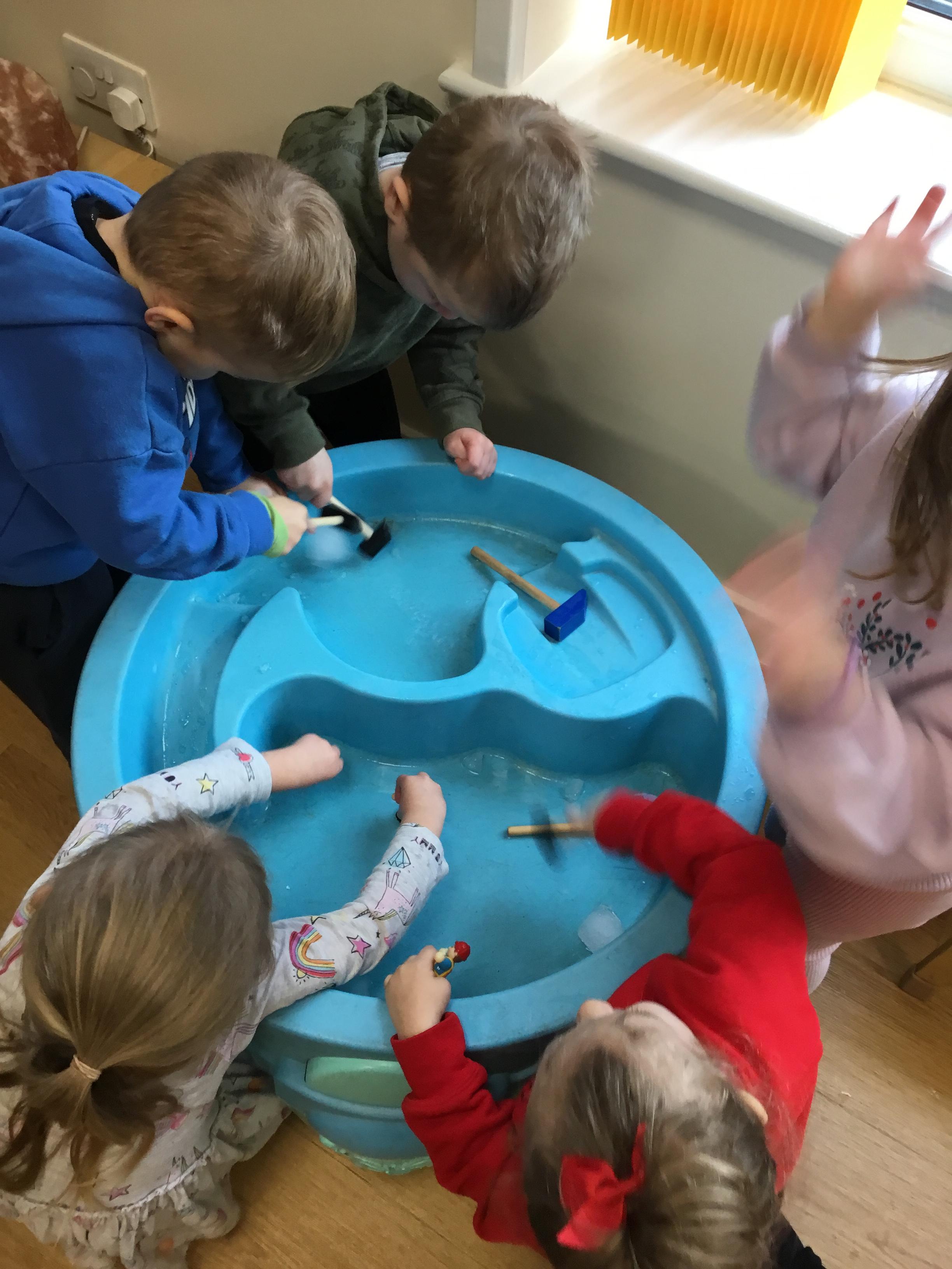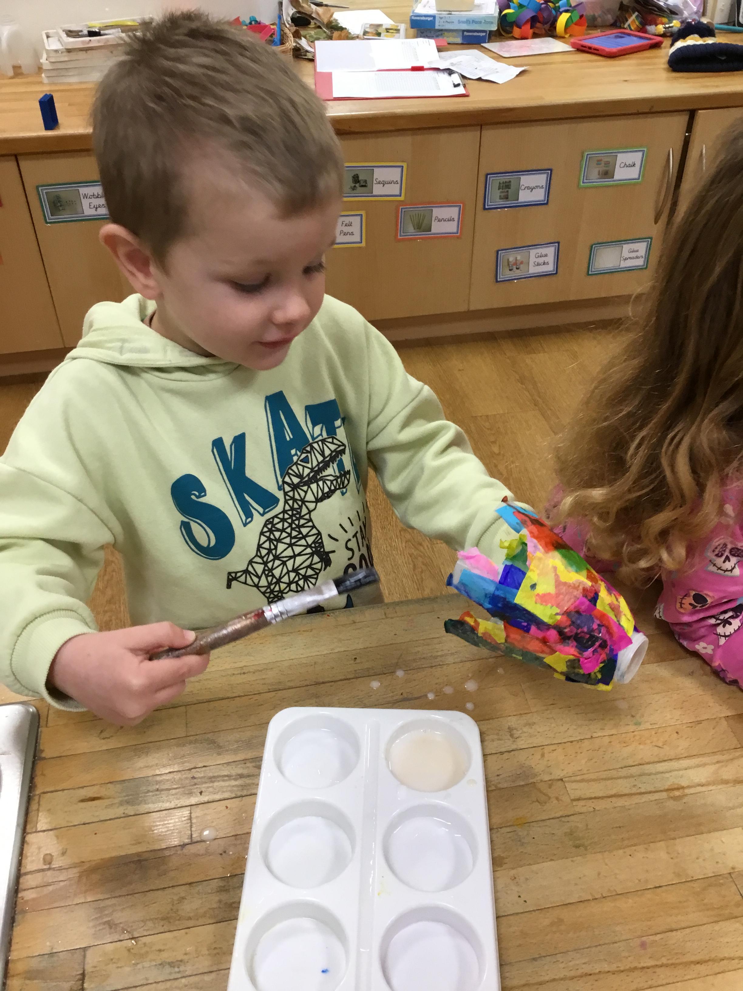 After Christmas, we found another use for our leftover pumpkins – turning them into birdfeeders and snowmen (after we’d painted them white first of course!) We also used our creative skills to decorate mittens, our maths skills to make repeating patterns on scarves and our language skills to retell the story of The Snowman. As well as this classic story, we also enjoyed lots of other winter themed stories. We explored ice and discovered what causes it to melt as well as experimenting with ice paints. We observed frost and recreated it on bare sticks using cotton wool and glitter. Winter isn’t dark and gloomy – it’s FUN!
