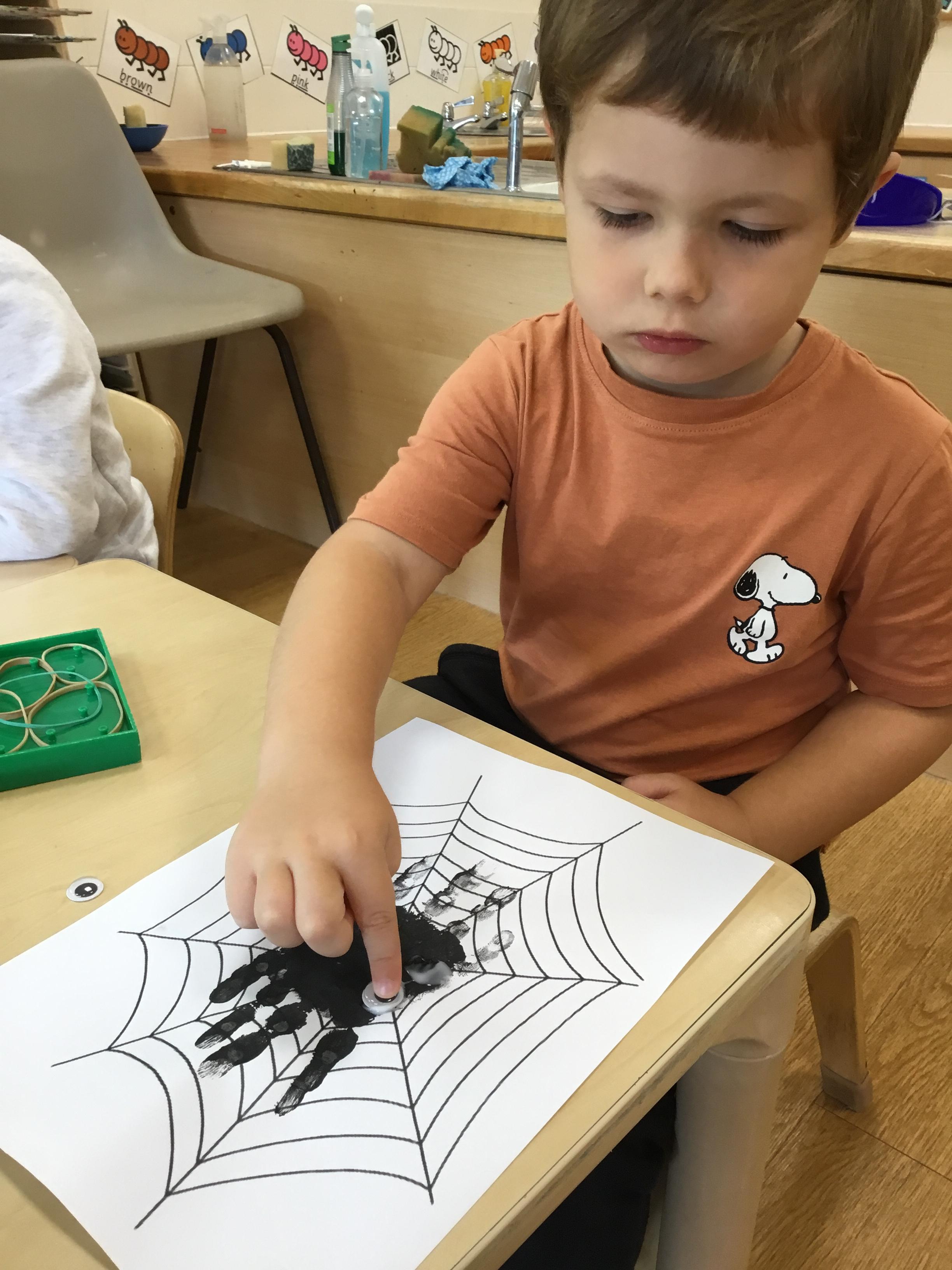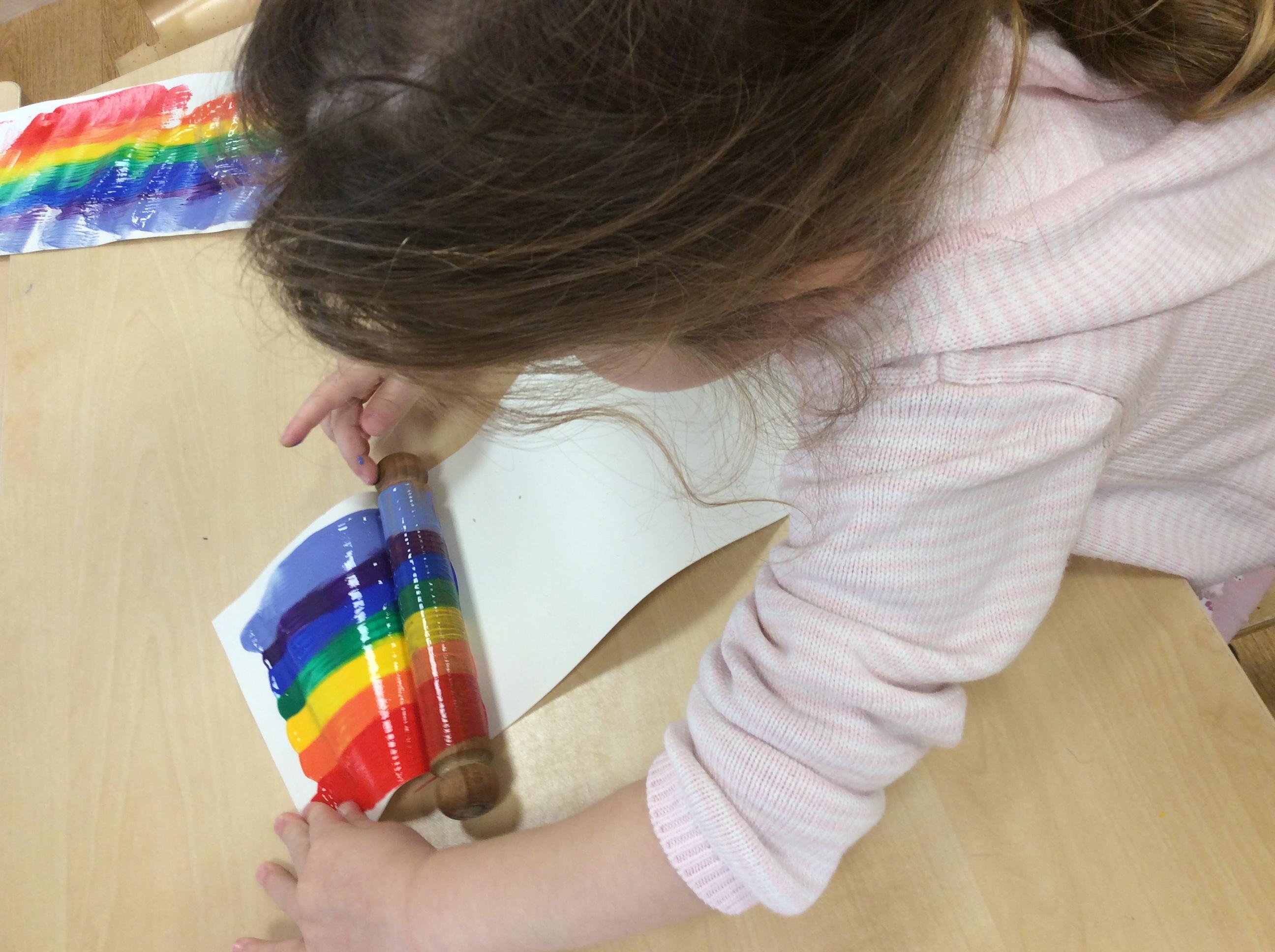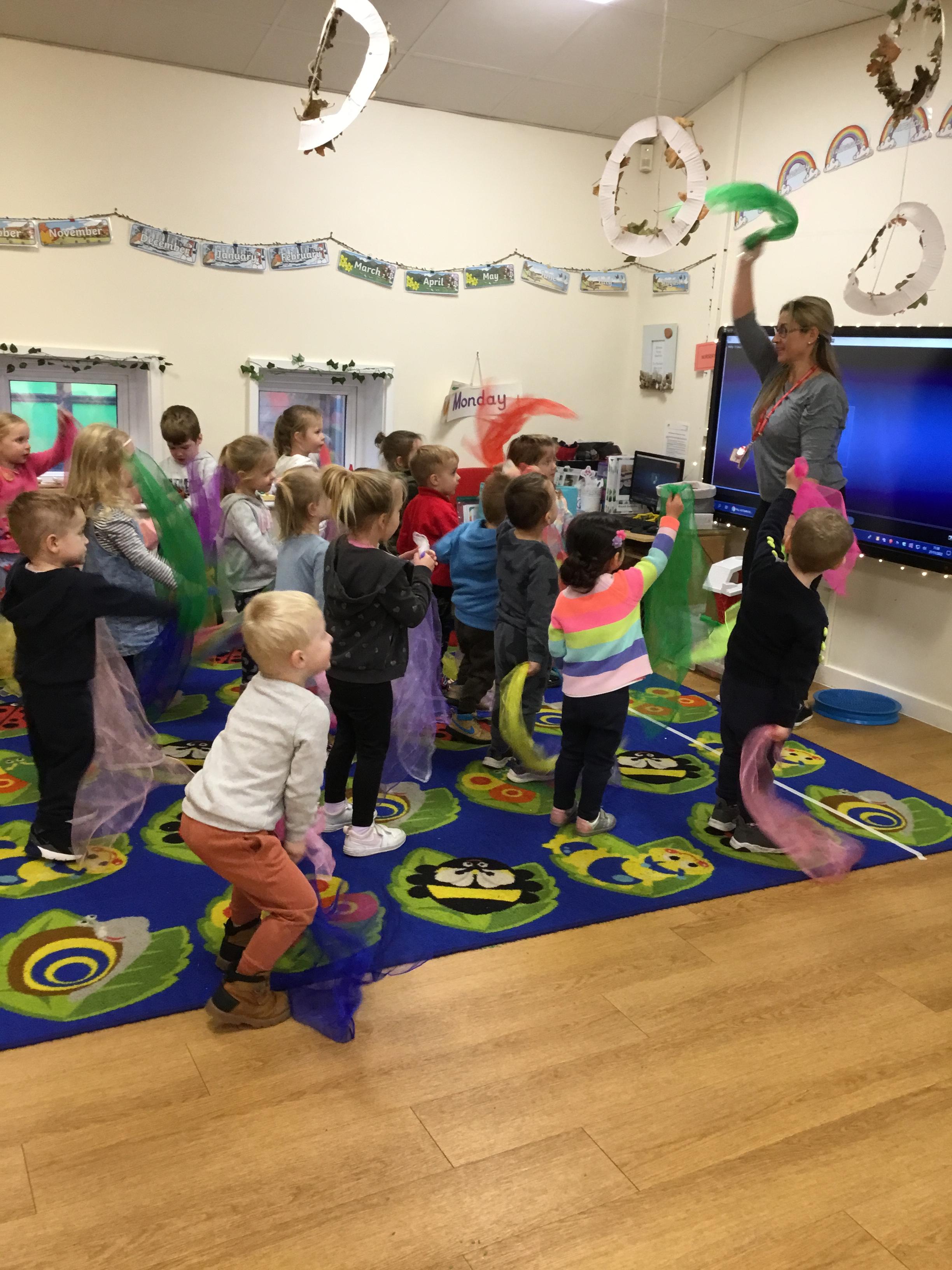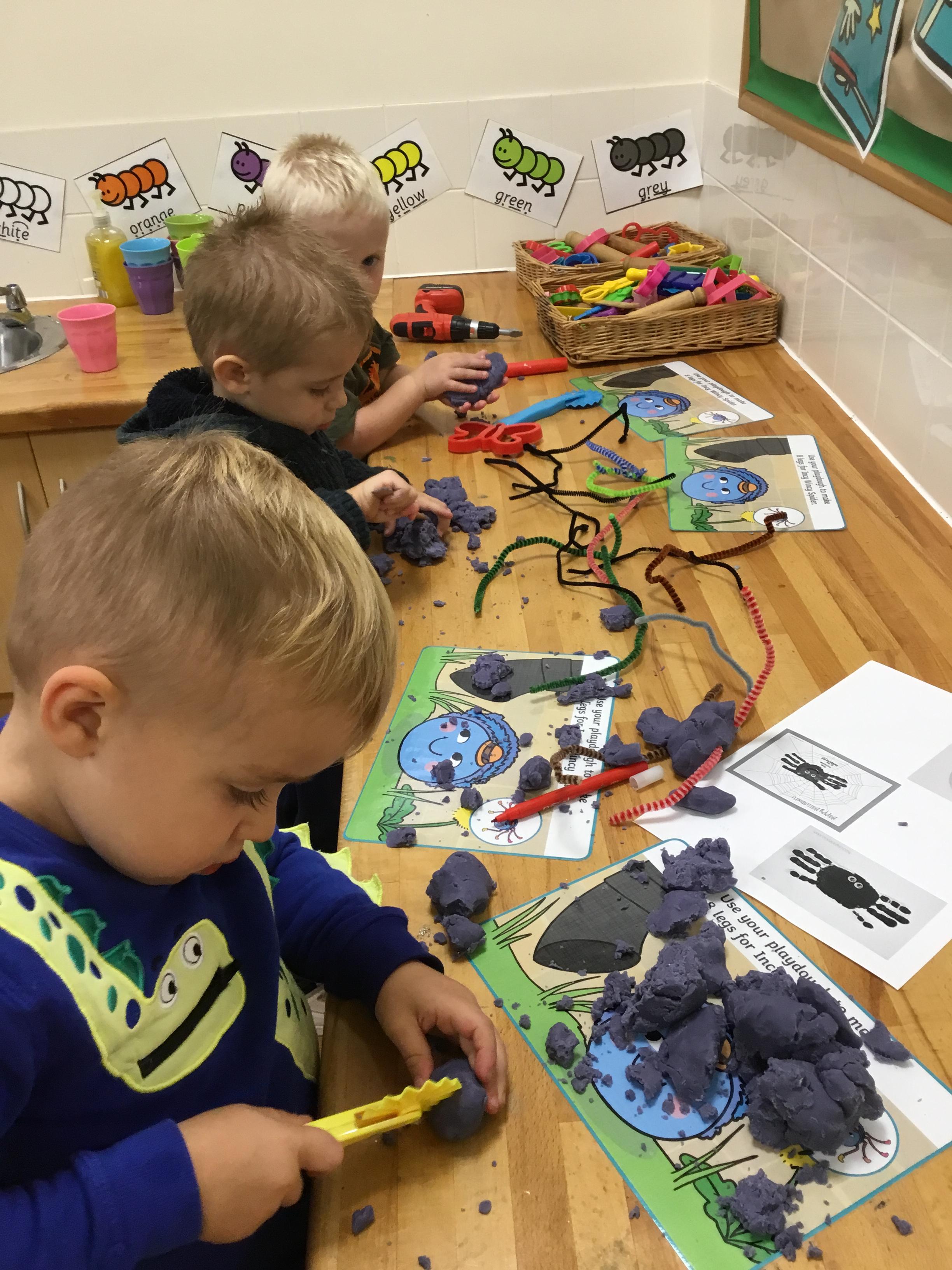 Finally, we have explored the theme of Rain. We learned some rain rhymes and accompanied them using instruments and we have found out a little of how rain is formed – we even did an experiment to see what happens when a cloud gets too full and heavy! We counted and matched raindrops and designed our own. We even did an Incy Wincy Spider dough disco to strengthen the muscles in our hands and we loved mark making in a cloud (of shaving foam!)