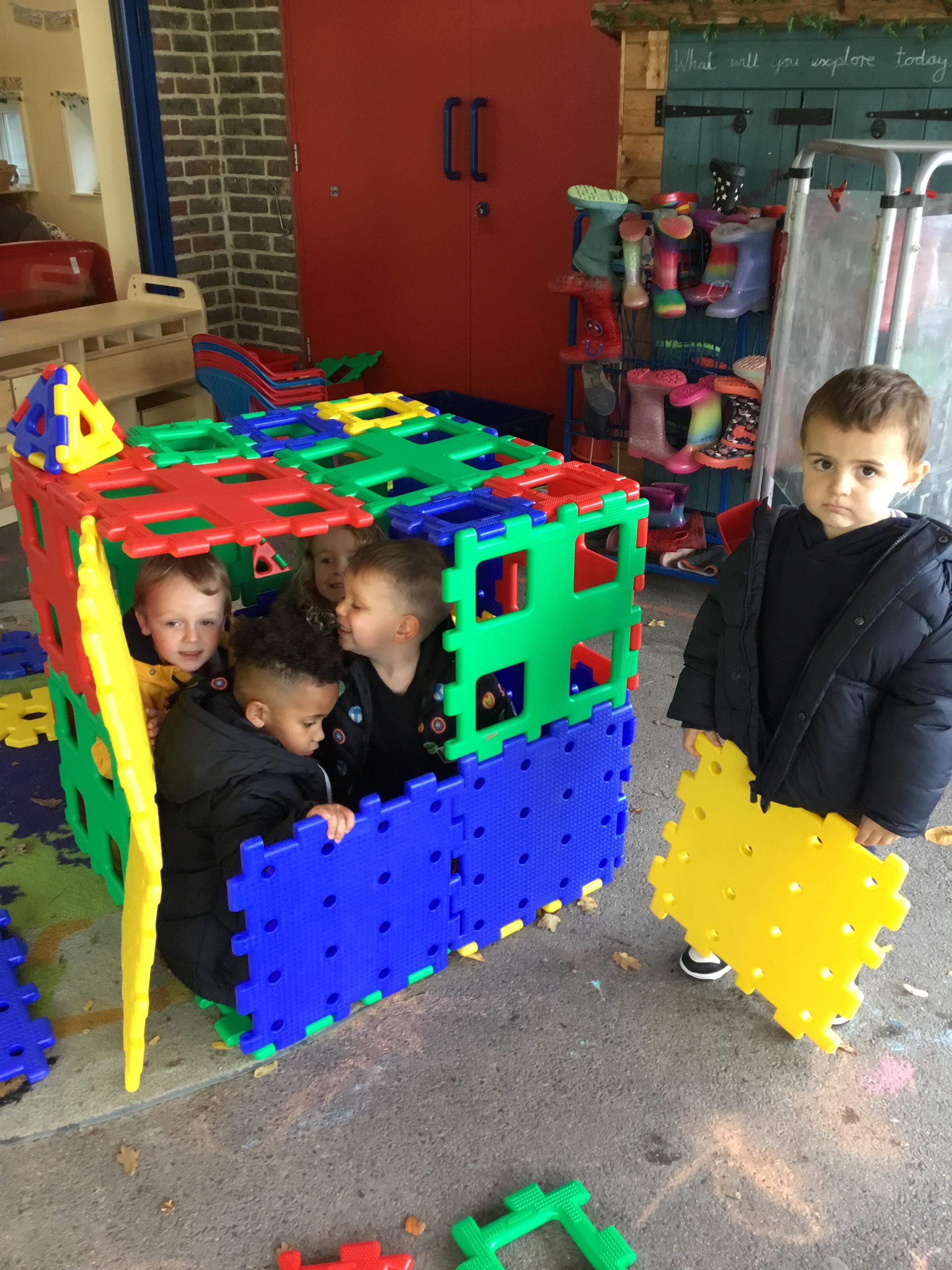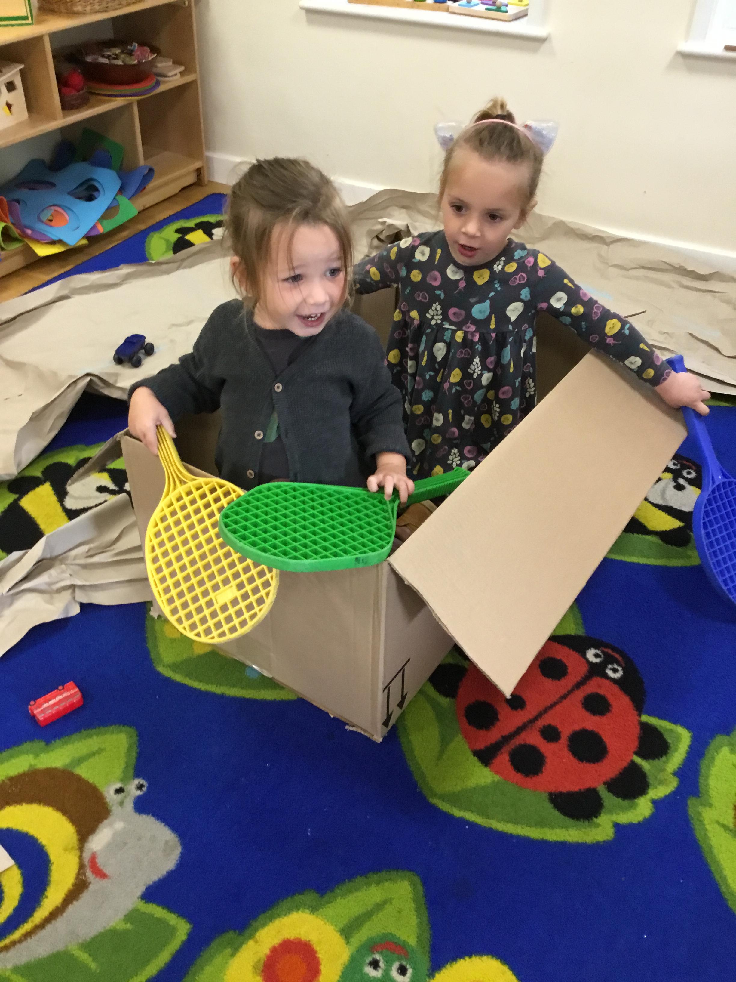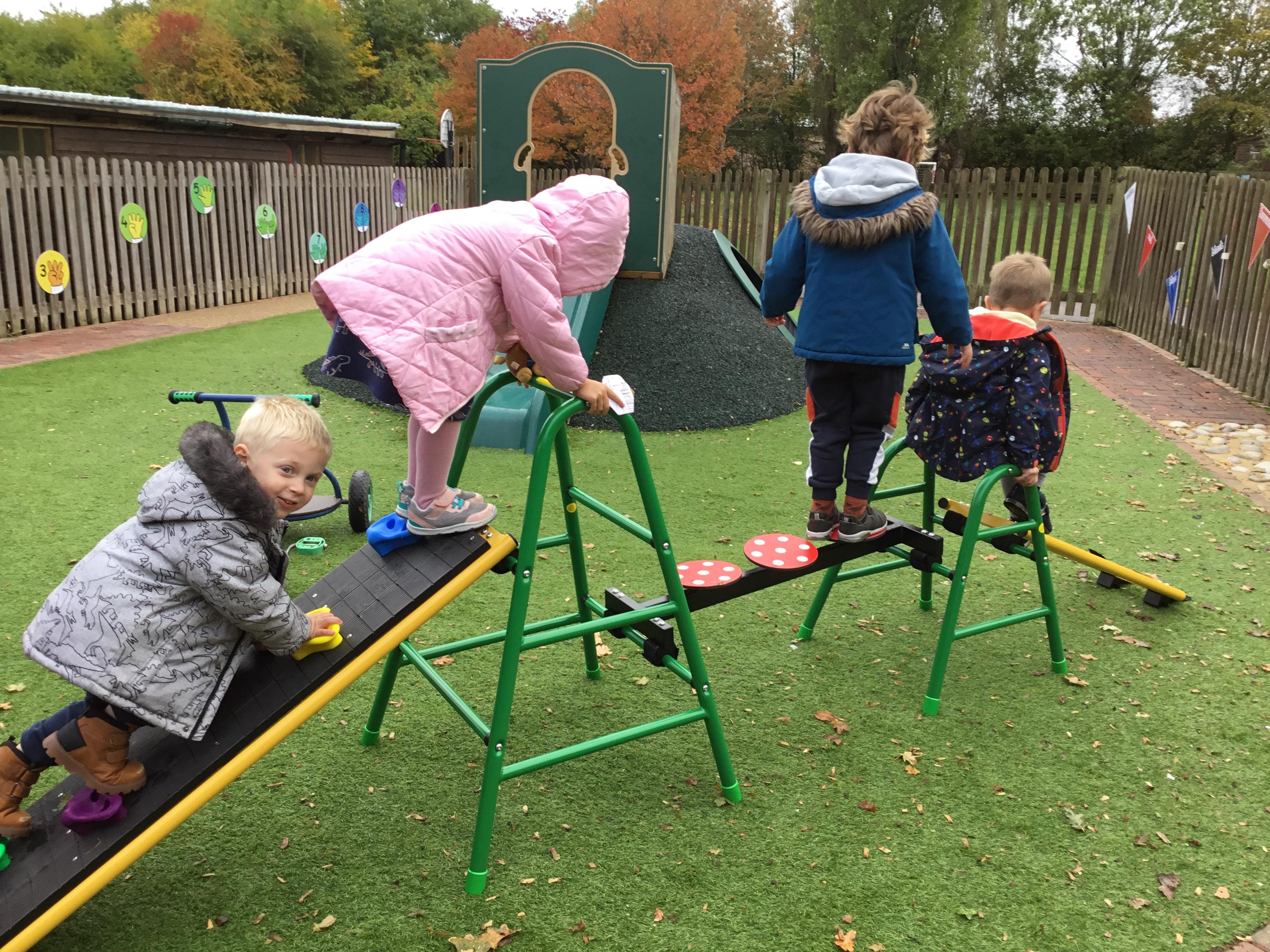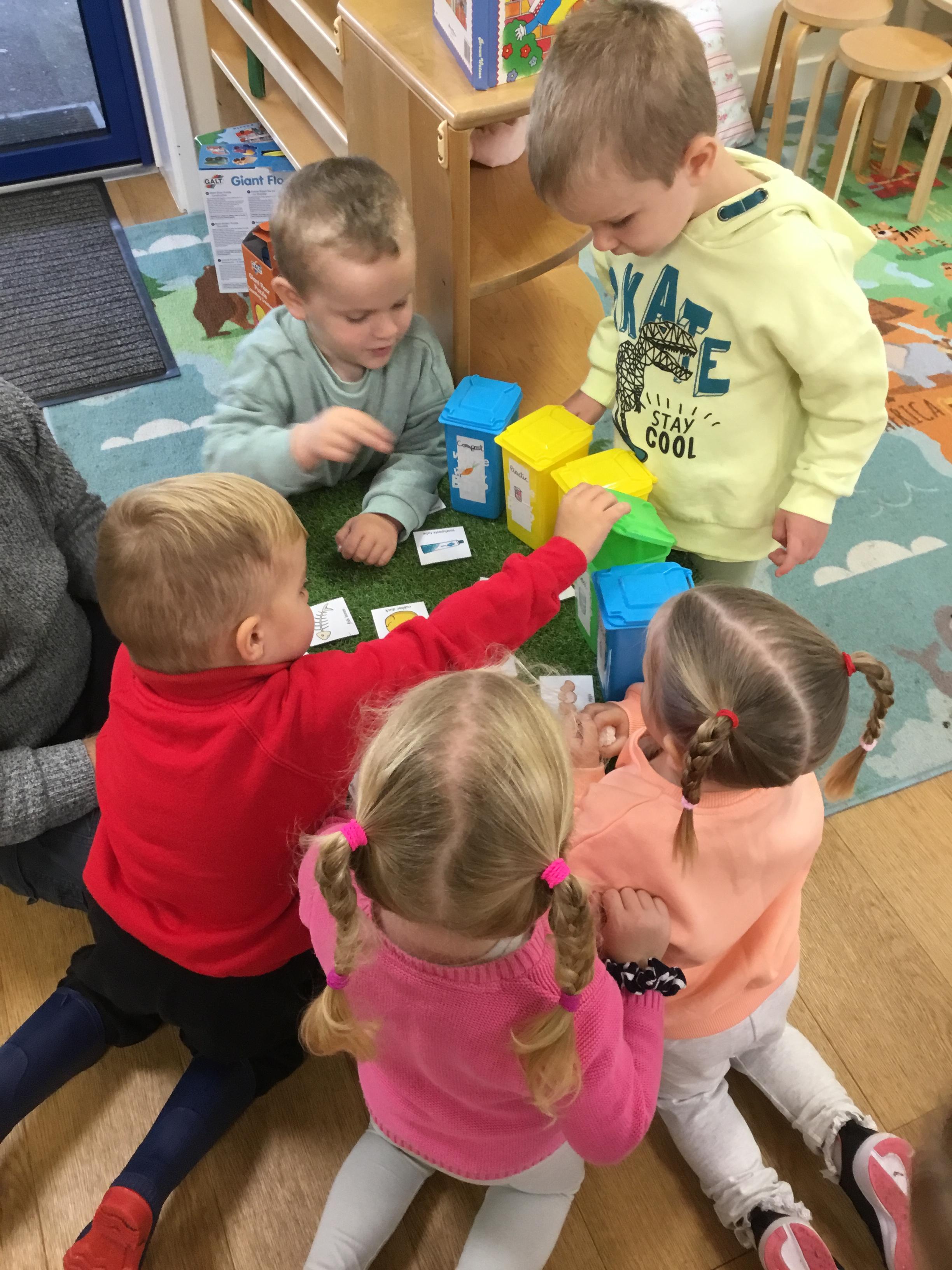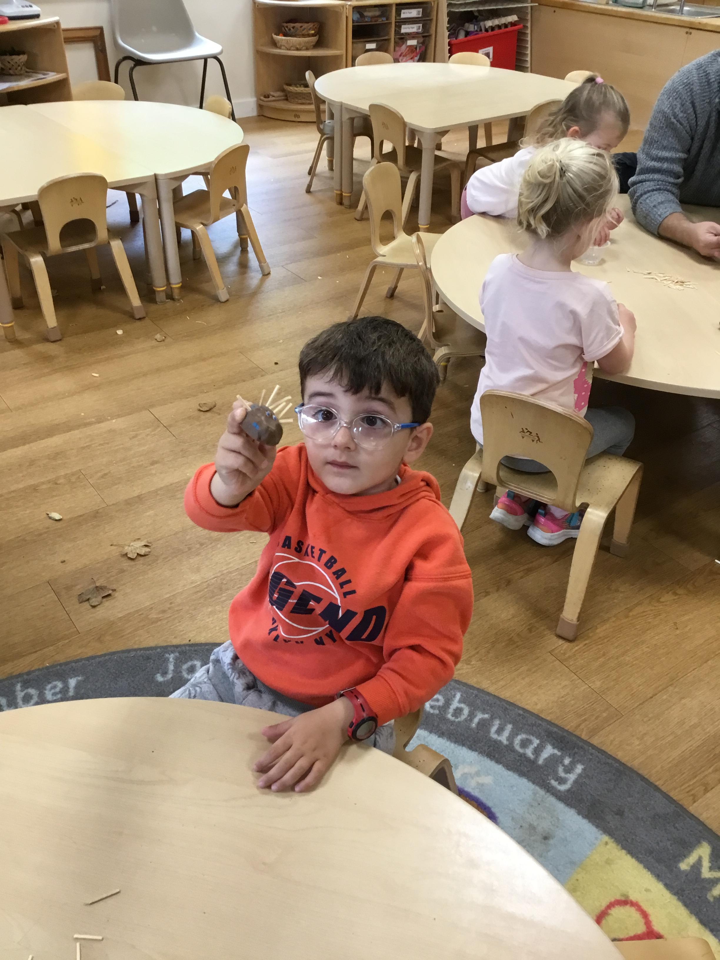 Autumn arrived in earnest and that lent itself to another well loved theme – Autumn. We enjoyed listening to lots of Autumn themed stories including Leaf Man by Lois Ehlhart and we collected different coloured and sized leaves to make our own leaf people. The children really liked playing with pumpkins – sorting and ordering them by size and colour. We have saved some to paint white in winter and the rest we made into bird feeders