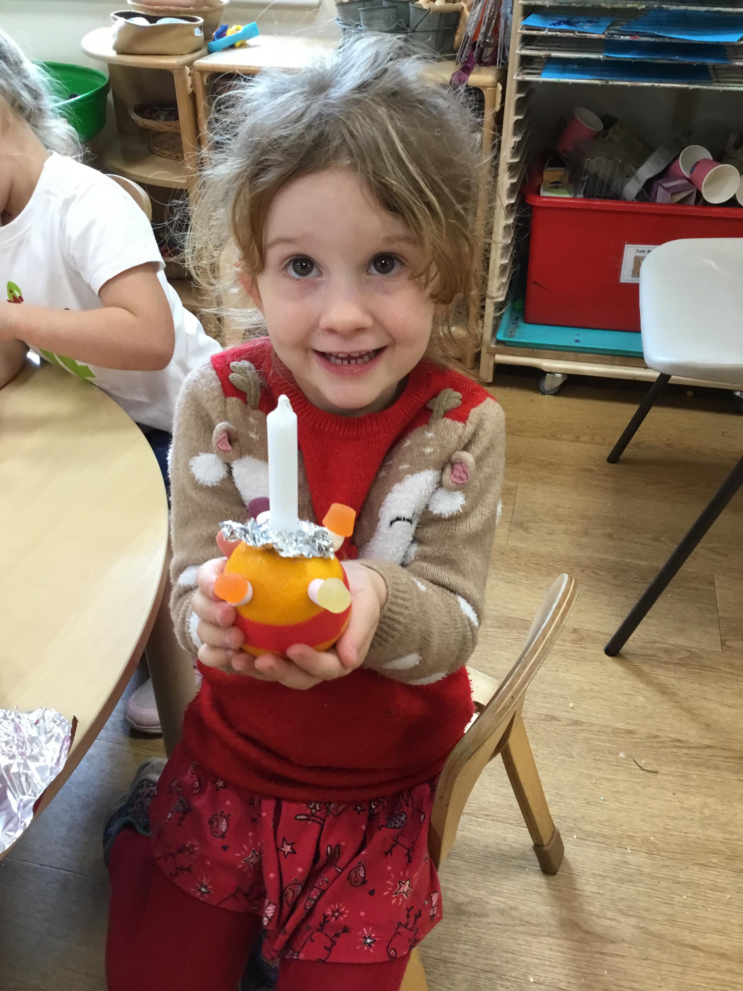 We were proud to contribute to a beautiful purple poppy wreath which was presented at St Martin’s Church as part of their Remembrance Day service and we rounded off the year by exploring all things Christmassy including making Christingles and thinking about the story of the very first Christmas. It was especially lovely to welcome parents and carers into Nursery to hear the children sing and to take part in some arts and crafts with their children – a lovely time was had by all!