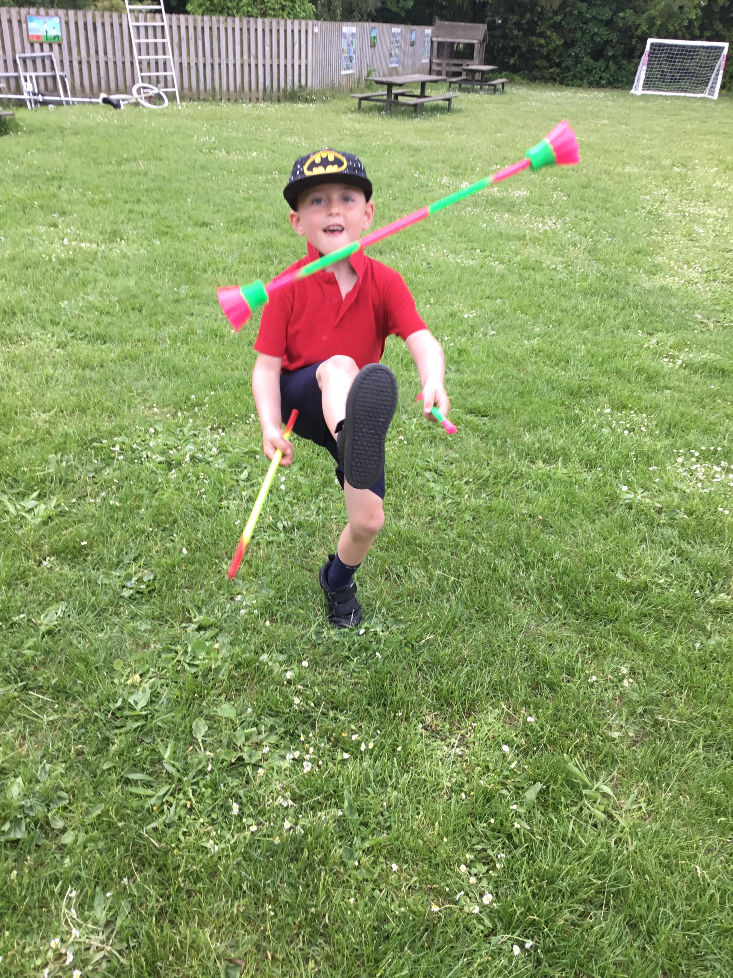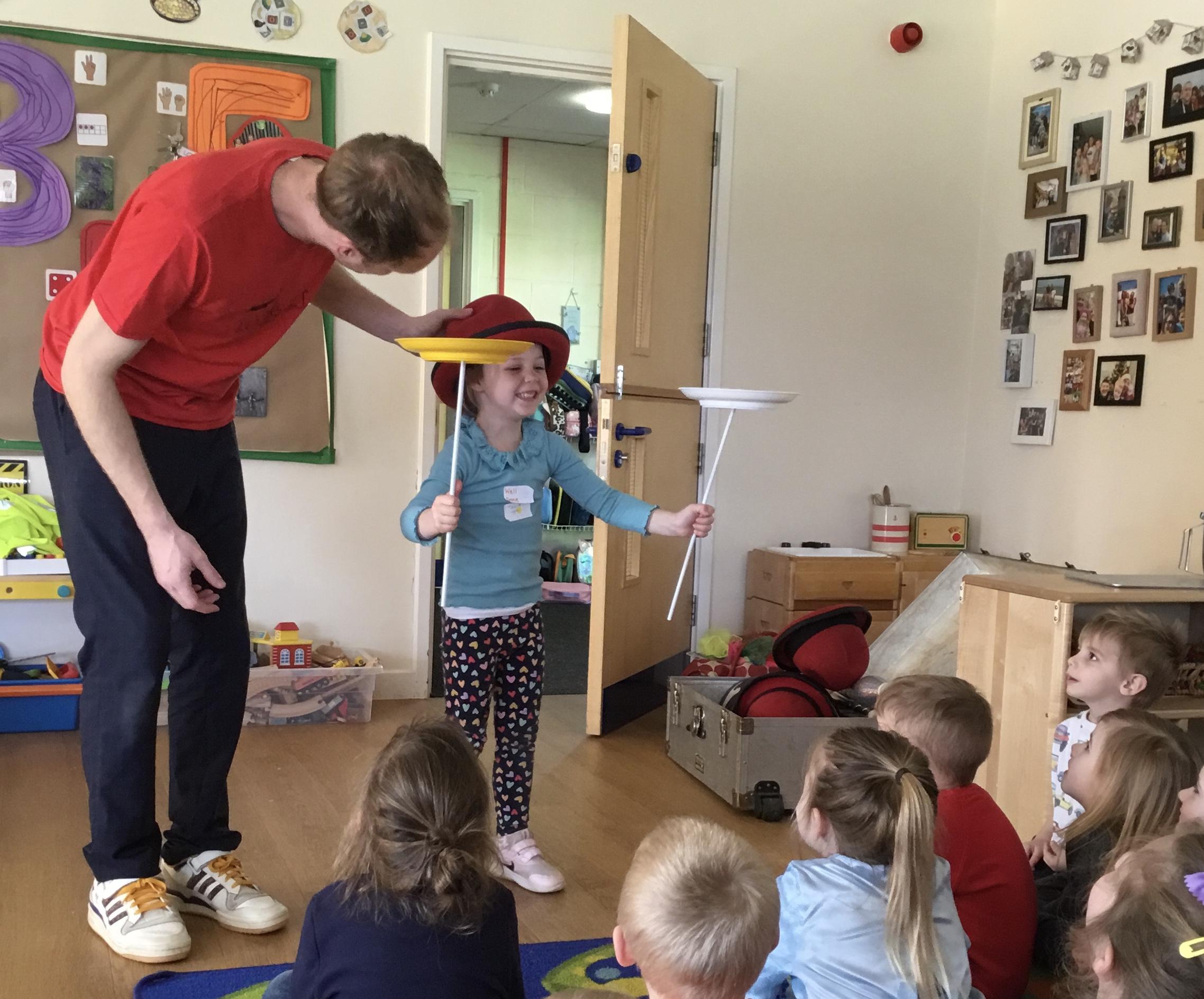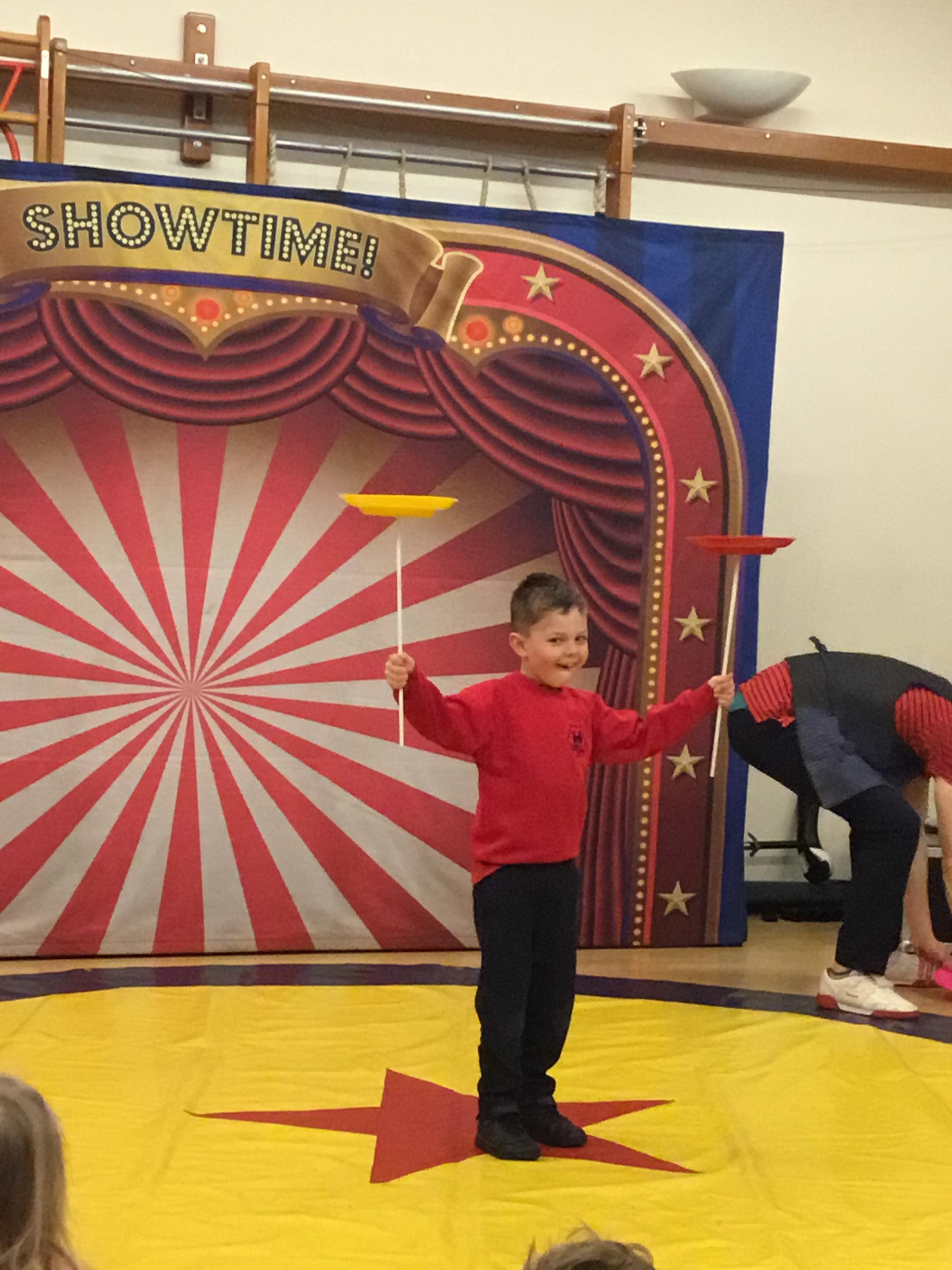 Lucas Jet kindly returned to Herne to provide another incredible Circus Day experience! Our day started with a brilliant show where Lucas performed lots of amazing tricks. Each class then had a session with Lucas to learn circus skills including plate spinning and using flower sticks!
